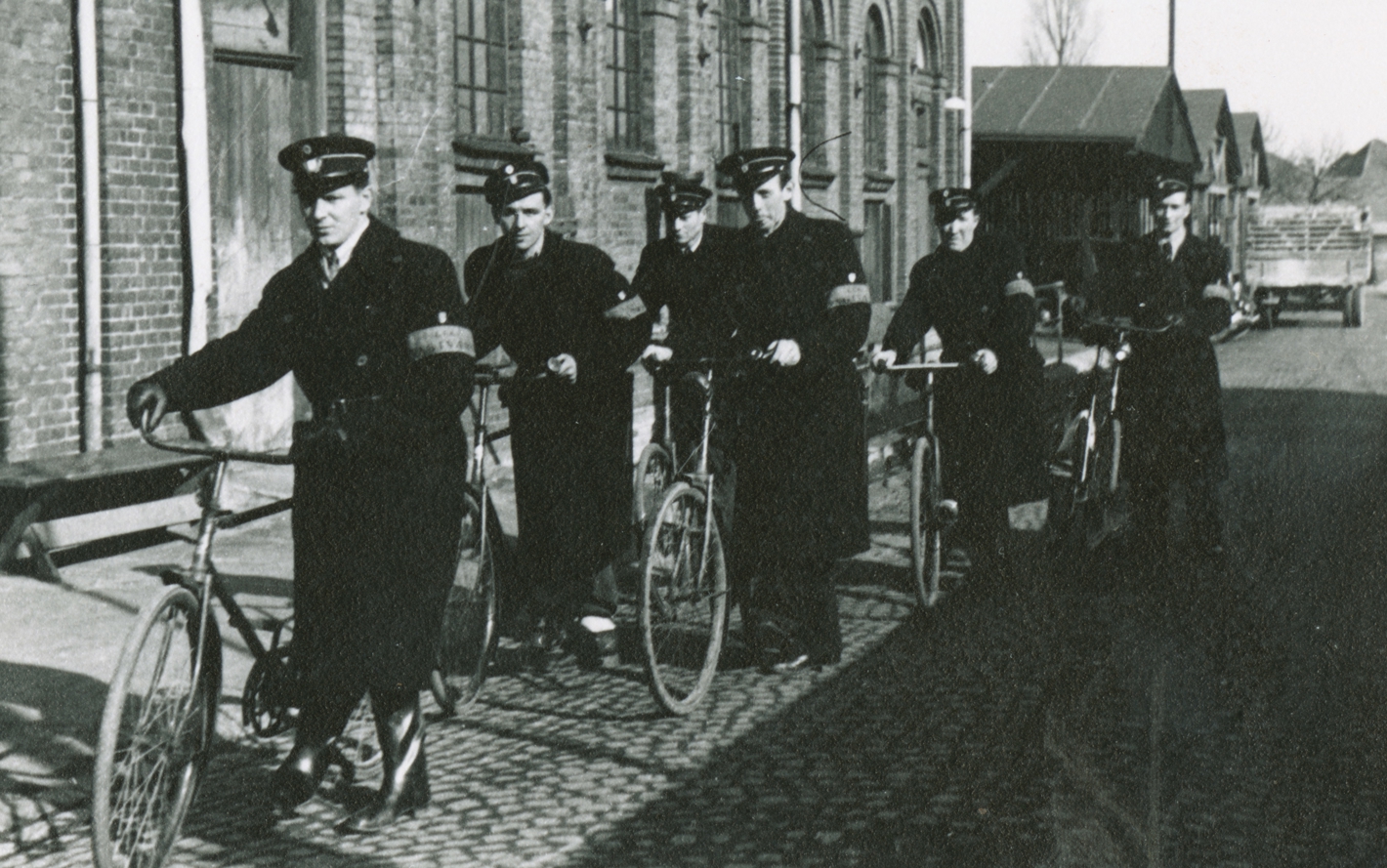 Lyngby-Taarbæk Vagtværn rykker ud med cykler fra deres lokale på det tidligere Gasværk, 1944